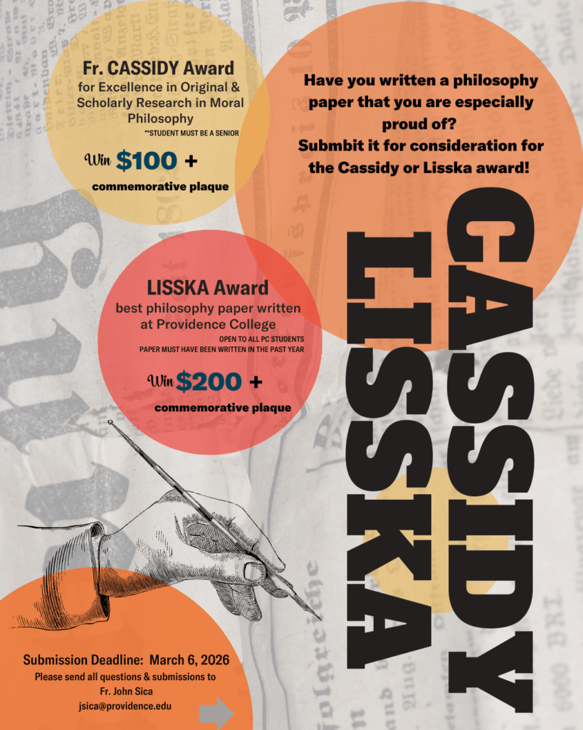 Fr. Cassidy Award is a $100 award goes to a single student who is a senior this year and who wrote an essay in an ethics course at PC and the paper must have scored an A or A- in that course.